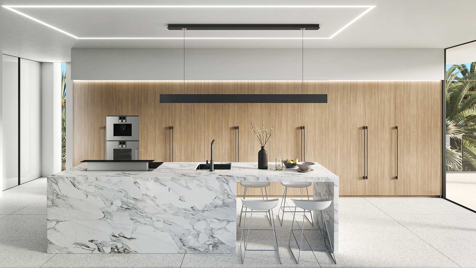 The Canary Dream House is built on principles of minimalist elegance. It consists of two interlocking L-shaped forms, with one form extending out from the other, creating a distinctive spatial layout.