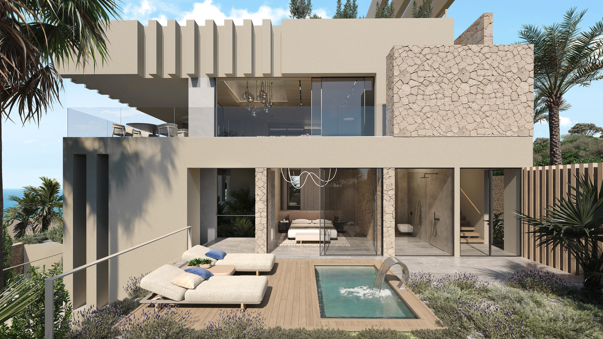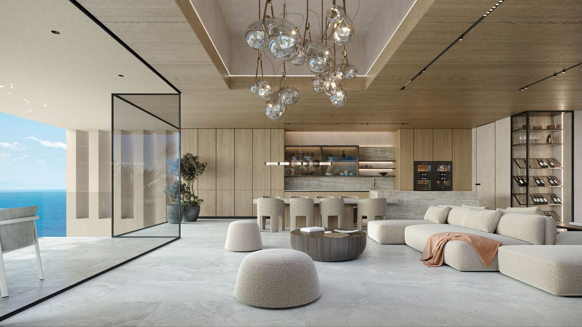 Villa Oceanica is a serene and tranquil embodiment of minimalist design, built upon soft pastel shades of brown and beige. With natural elements of wood and Taj Mahal stone, the villa’s architecture creates a sense of closeness to nature, as if the house itself were the gentle breath of an ocean breeze.